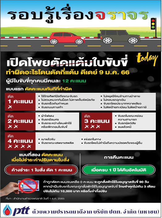 เปิดโพยตัดเเต้มใบขับขี่ ทำผิดอะไรโดนตัดกี่เเต้ม