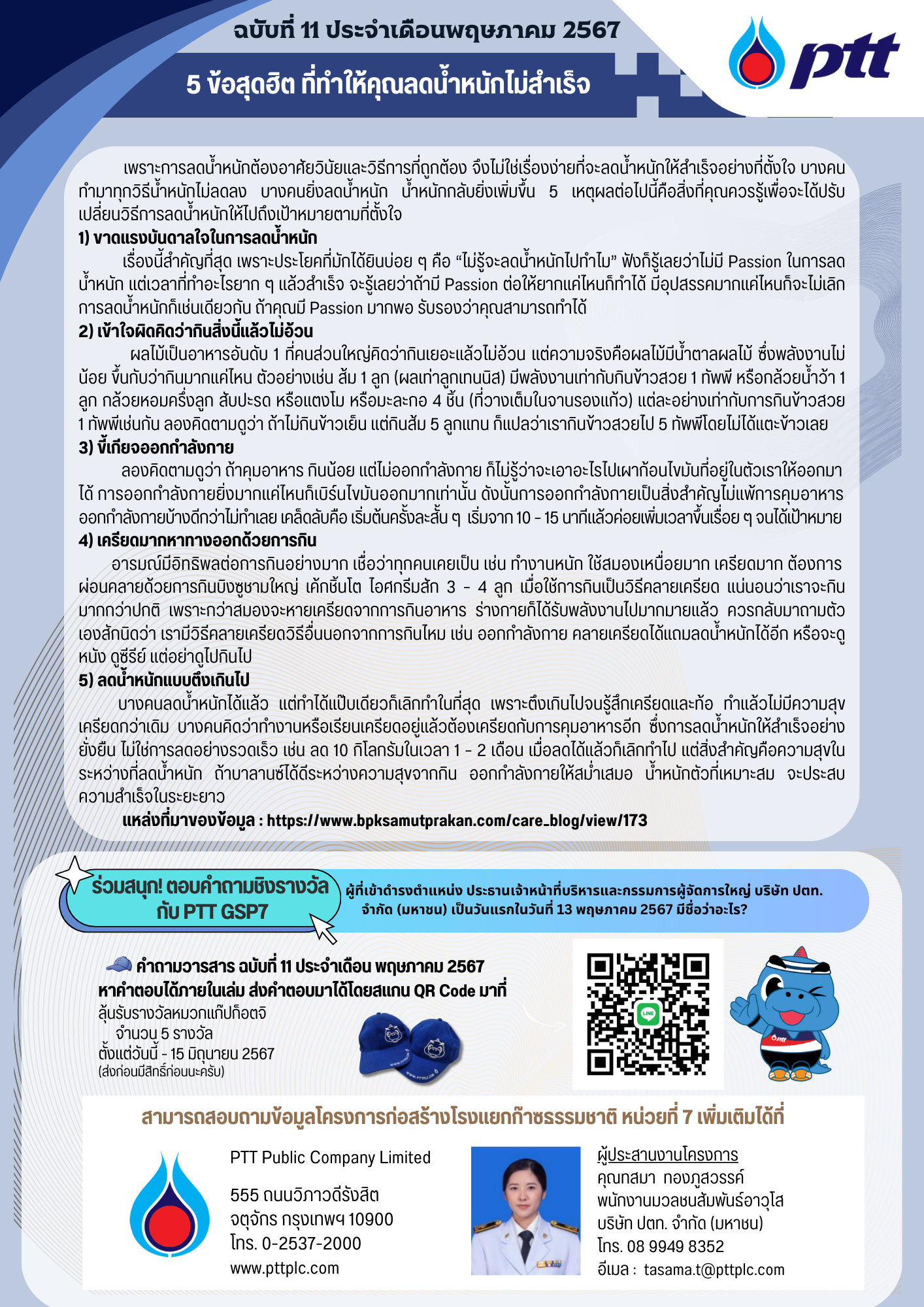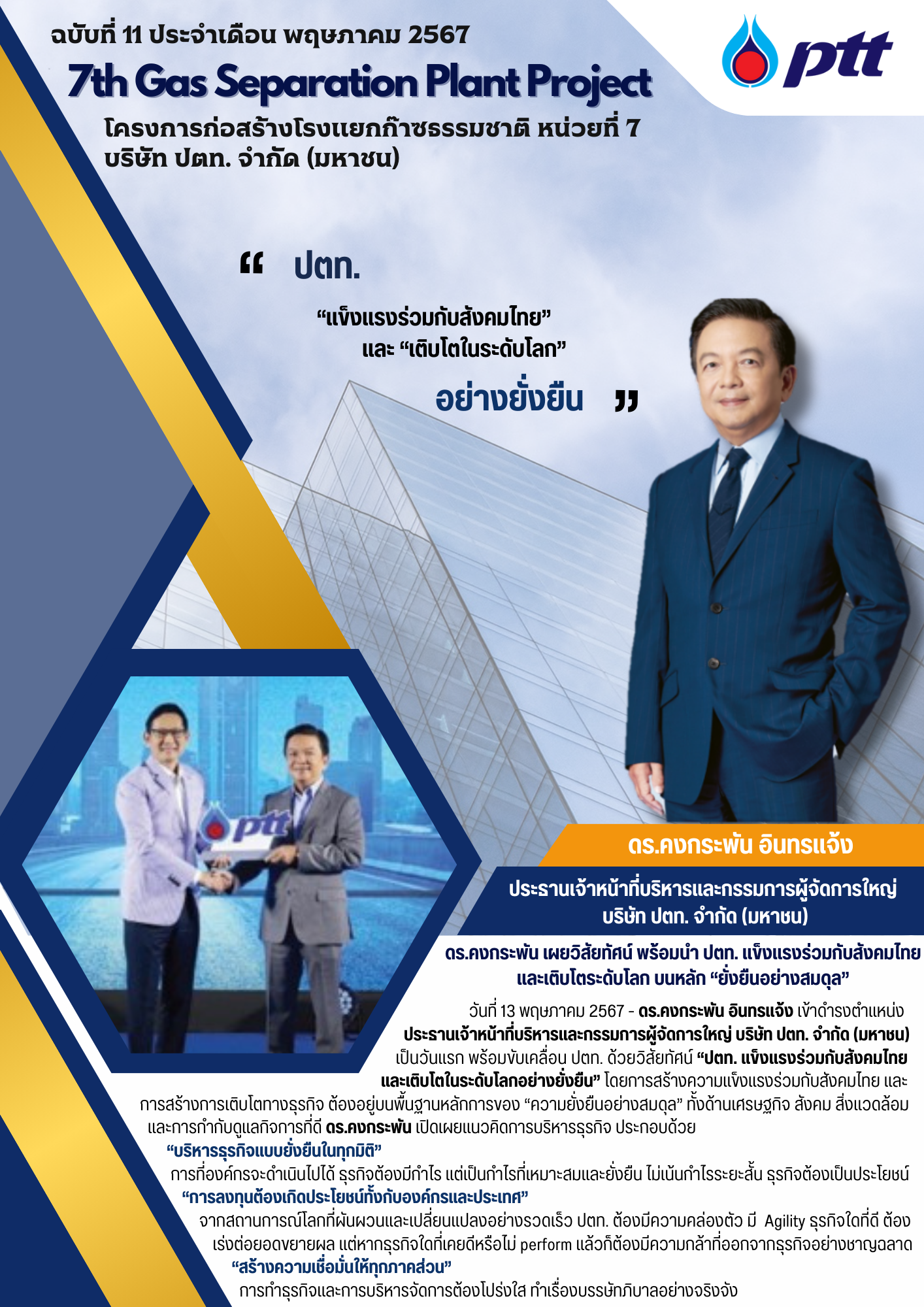 วารสารประชาสัมพันธ์โครงการก่อสร้างโรงแยกก๊าซธรรมชาติ หน่วยที่ 7 บริษัท ปตท. จำกัด (มหาชน) ฉบับที่ 11 ประจำเดือน พฤษภาคม 2567 plazaradio 27/05/2024 วารสารประชาสัมพันธ์