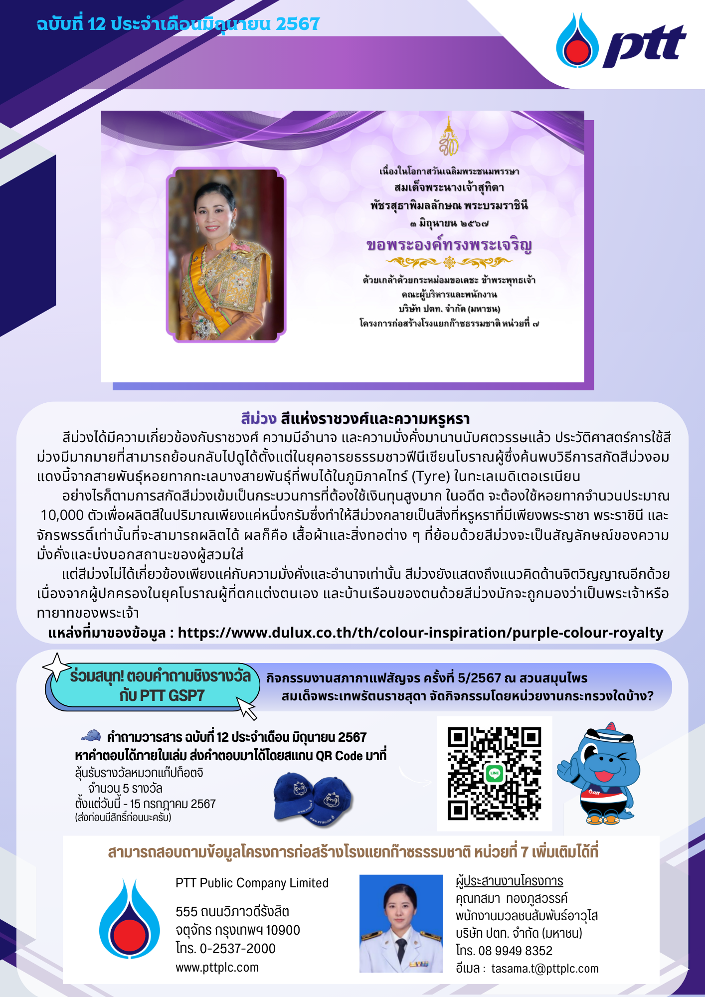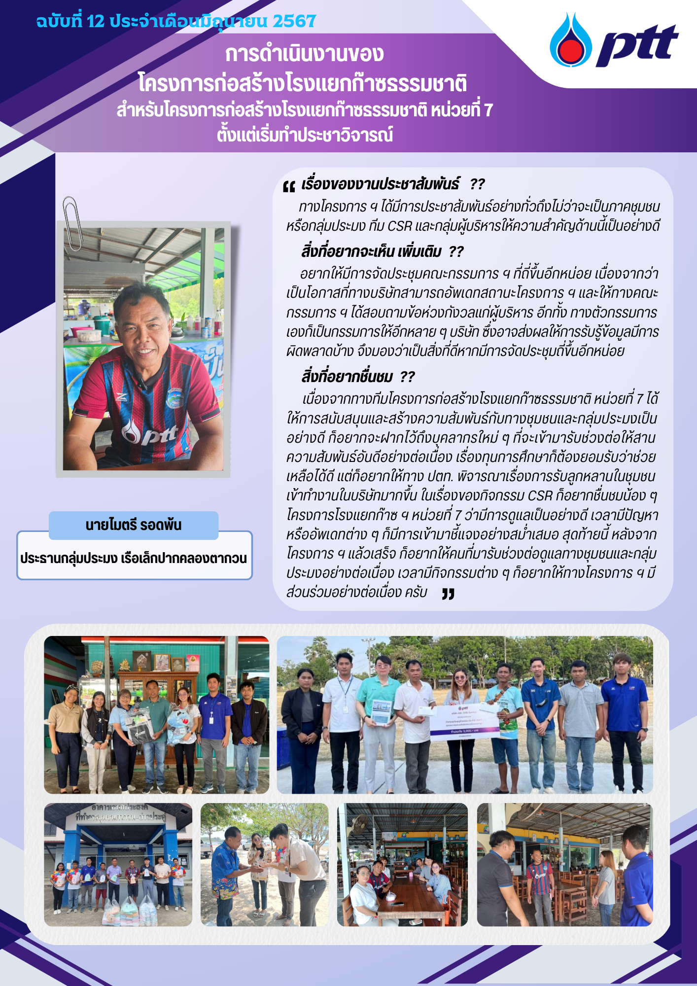 วารสารประชาสัมพันธ์โครงการก่อสร้างโรงแยกก๊าซธรรมชาติ หน่วยที่ 7 บริษัท ปตท. จำกัด (มหาชน) ฉบับที่ 12 ประจำเดือน มิถุนายน 2567 plazaradio 23/07/2024 วารสารประชาสัมพันธ์