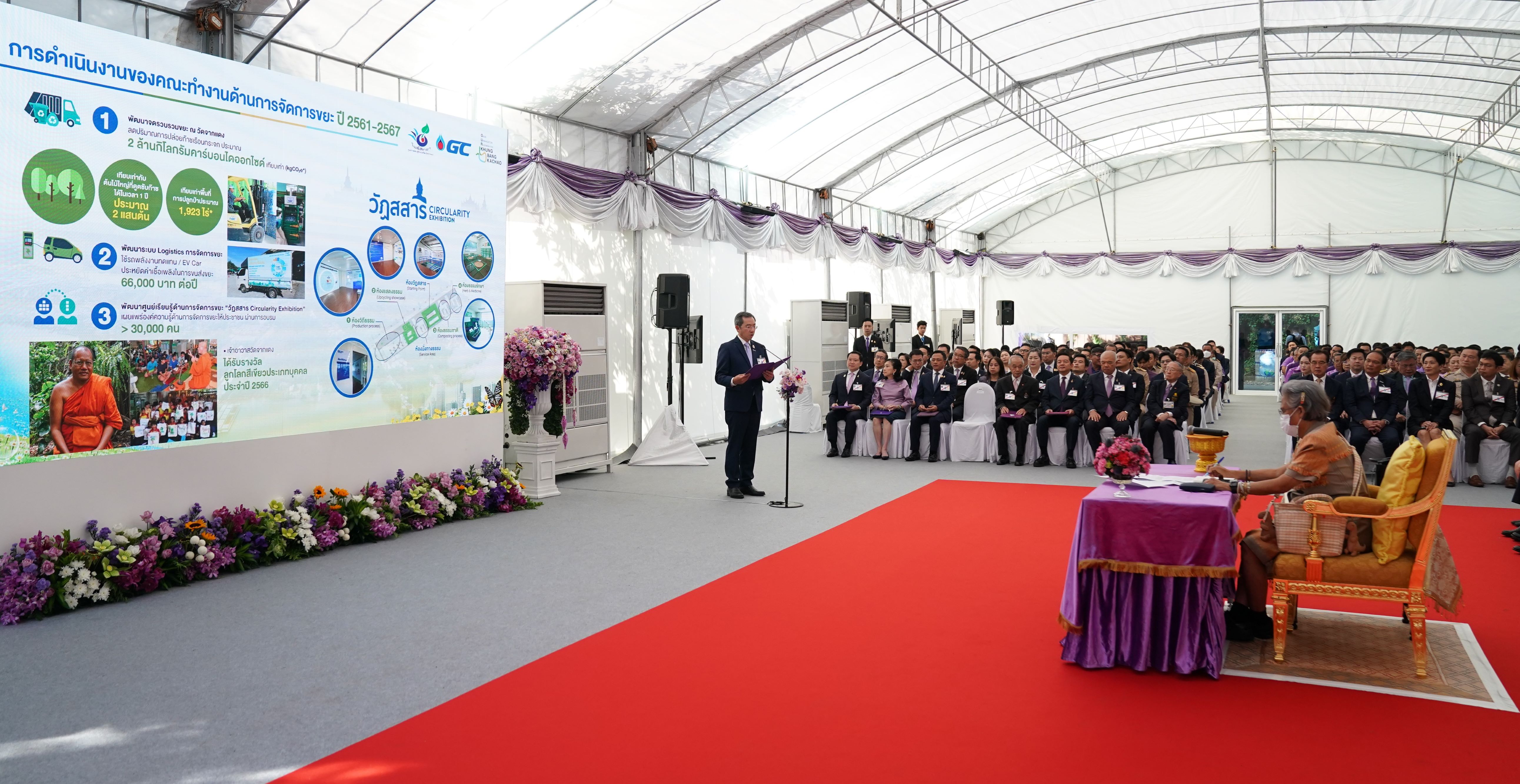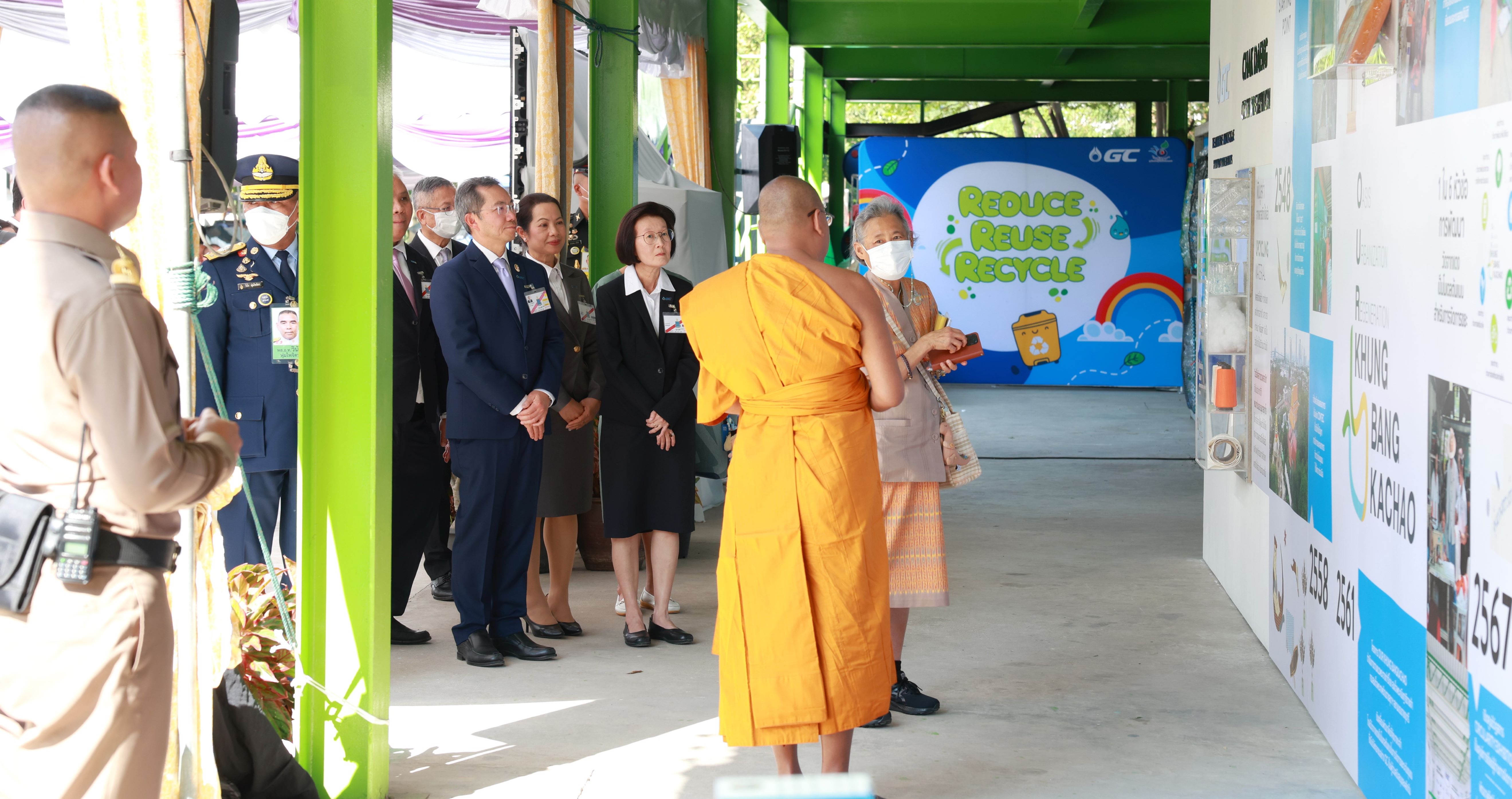 วันที่ 20 ธ.ค. 2567 – สมเด็จพระกนิษฐาธิราชเจ้า กรมสมเด็จพระเทพรัตนราชสุดา ฯ สยามบรมราชกุมารี เสด็จพระราชดำเนินทรงติดตามผลการดำเนินงาน โครงการ OUR Khung BangKachao ปี 2561 – 2566 โดยมี ดร.สุเมธ ตันติเวชกุล กรรมการและเลขานุการมูลนิธิชัยพัฒนา ในนามประธานคณะกรรมการกำกับการดำเนินงานพัฒนาพื้นที่คุ้งบางกะเจ้าสู่ความยั่งยืน “โครงการ OUR Khung BangKachao” นายฉัตรชัย พรหมเลิศ ประธานกรรมการ บริษัท ปตท. จำกัด (มหาชน) (ปตท.) นายคงกระพัน อินทรแจ้ง ประธานเจ้าหน้าที่บริหารและกรรมการผู้จัดการใหญ่ ปตท. นายณะรงค์ศักดิ์ จิวากานันต์ ประธานเจ้าหน้าที่บริหาร บริษัท พีทีที โกลบอล เคมิคอล จำกัด (มหาชน) (GC) ในฐานะประธานคณะทำงานด้านการจัดการขยะ พร้อมคณะผู้บริหารจาก กลุ่ม ปตท. ข้าราชการ พนักงาน หน่วยงานภาครัฐ ภาคเอกชน และประชาชนในพื้นที่ ร่วมเฝ้าฯ รับเสด็จ ณ คุ้งบางกะเจ้า อำเภอพระประแดง จังหวัดสมุทรปราการ