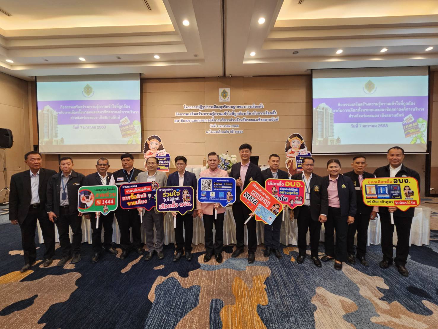 วันที่ 7 มกราคม 2568 ที่โรงแรมโกเด้น ซิตี้ ระยอง อ.เมืองระยอง สำนักงานคณะกรรมการการเลือกตั้งประจำจังหวัดระยองจัดโครงการ ‘ปฏิรูปการเมืองสุจริตบนฐานการเลือกตั้ง กิจกรรมสร้างเสริมความรู้ความเข้าใจที่ถูกต้องเกี่ยวกับการเลือกตั้งสมาชิกสภาและนายกองค์การบริหารส่วนจังหวัดระยองเชิงสมานฉันท์’ โดยมีนายกัฬชัย เทพวรชัย รองผู้ว่าราชการจังหวัดระยอง เป็นประธานในการเปิดงาน และมีนายใจเพชร สาครพานิช ผู้อำนวยการสำนักงานคณะกรรมการการเลือกตั้งประจำจังหวัดระยอง นายไชยวัฒน์ ภูนิละมัย ผู้อำนวยการสำนักงานป้องกันและปราบปรามการทุจริตแห่งชาติ ประจำจังหวัดระยอง นายสุรินทร์ แสงทอง ปลัดองค์การบริหารส่วนจังหวัดระยอง นายคีรีวัฒน์ อ้นพร้อม ประชาสัมพันธ์จังหวัดระยอง สื่อมวลชนจังหวัดระยอง และบรรดาผู้ลงสมัครนายกองค์การบริหารส่วนจังหวัดระยองและสมาชิกสภาองค์การบริหารส่วนจังหวัดระยอง เข้าร่วมรับฟังการบรรยายข้อมูลเกี่ยวกับการเลือกตั้งและการยื่นบัญชีทรัพย์สินของผู้สมัคร