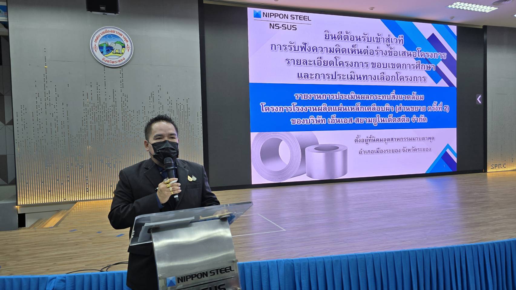 เมื่อวันที่ 5 ก.พ.68 เวลา 09.00 น. ณ ตึก M ศูนย์บริการสาธารณสุขเทศบาลเมืองมาบตาพุด ต.มาบตาพุด อ.เมือง จ.ระยอง นางสุกัญญา พรมมานอก ปลัดอำเภอเมืองระยอง ให้เกียรติร่วมรับฟังความคิดเห็นการขยายกำลังการผลิตแผ่นเหล็กเคลือบผิวบริษัท NS สยามยูไนเต็ดสตีล จำกัด โดยมีนายชยาพล จงเจริญ หัวหน้าศูนย์พัฒนาวิชาการอาชีวอนามัยและสิ่งแวดล้อม จ.ระยอง นายจีรเดช สัตยายุทธ์ ผู้ช่วยกรรมการผู้จัดการ บริษัท เอ็นเอส-สยามยูไนเต็ดสตีล จำกัด นายวิธาน สันติไชยกุล ผู้ช่วยกรรมการผู้จัดการ บริษัท เอ็นเอส-สยามยูไนเต็ดสตีล จำกัด หัวหน้าส่วนราชการ ผู้นำชุมชน หน่วยงานที่เกี่ยวข้องและประชาชนในพื้นที่ ร่วมประชุมรับฟังความคิดเห็นต่อร่างข้อเสนอรายละเอียดโครงการและการประเมินทางเลือกโครงการผลิตแผ่นเหล็กเคลือบผิวส่วนขยายครั้งที่ 2 เพื่อรองรับความต้องการที่เพิ่มขึ้นของอุตสาหกรรมบรรจุภัณฑ์