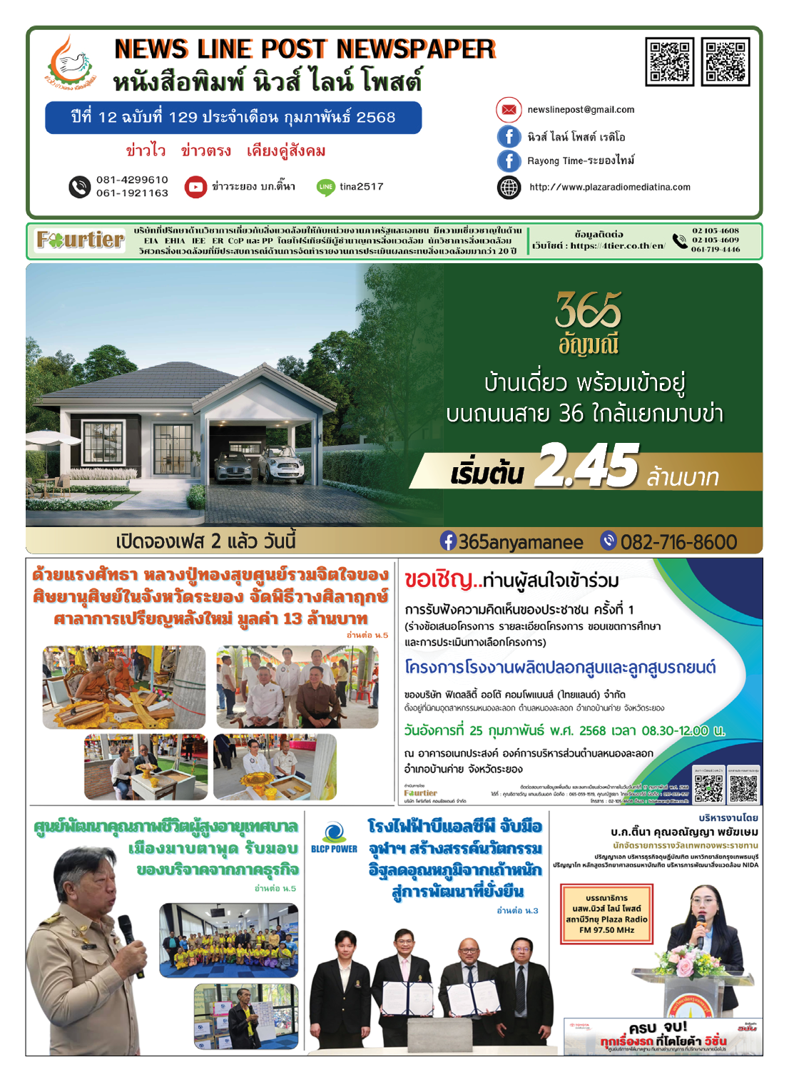หนังสือพิมพ์นิวส์ ไลน์ โพสต์ ปีที่ 12 ฉบับที่ 129 ประจำเดือน กุมภาพันธ์ 2568 plazaradio 19/02/2025 หนังสือพิมพ์ นิวส์ ไลน์ โพสต์