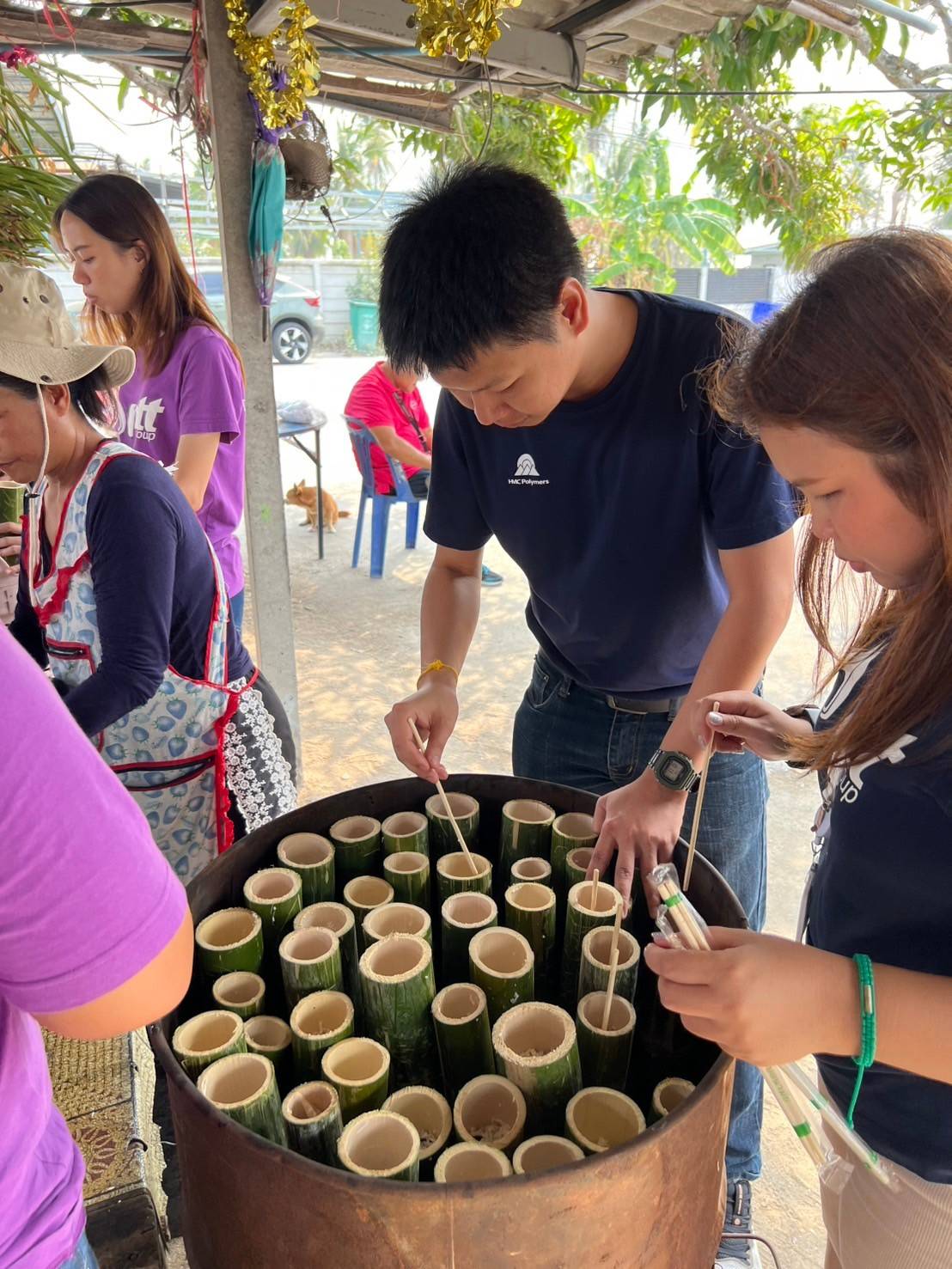 บริษัท เอ็ชเอ็มซี โปลีเมอส์ จำกัด โดยคุณบุปผาพรรณ พานทอง ผู้จัดการฝ่ายกิจการเพื่อความรับผิดชอบต่อสังคม และทีม CSR เข้าร่วมประเพณีบุญเดือนสาม หรือ ประเพณีบุญข้าวหลามของชุมชนต่างๆ ในเขตเทศบาลเมืองมาบตาพุด เทศบาลตำบลบ้านฉาง เทศบาลเมืองบ้านฉาง และร่วมสนับสนุนงบประมาณการจัดกิจกรรมในนามกลุ่ม ปตท. เพื่อสืบสานประเพณีท้องถิ่น ซึ่งถือเป็นกิจกรรมสร้างการมีส่วนร่วมระหว่างชุมชนและผู้ประกอบการภาคอุตสาหกรรมต่างๆ โดยนำข้าวหลามมาทำบุญตามประเพณีถวายเป็นพุทธบูชาและความเป็นสิริมงคลแก่ผู้เข้าร่วมงานทุกคน ทั้งนี้กิจกรรมดังกล่าวได้เริ่มตั้งแต่วันที่ 30 มกราคม – 25 กุมภาพันธ์ 2568 นี้