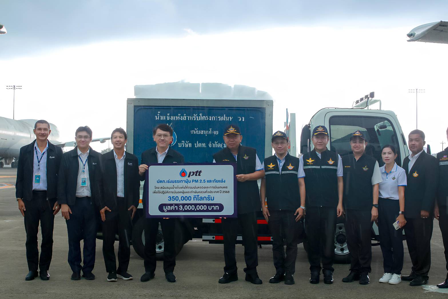 โรงแยกก๊าซธรรมชาติระยอง ได้ส่งมอบน้ำแข็งแห้ง เพื่อสนับสนุนปฏิบัติการของกรมฝนหลวงและการบินเกษตร โดยมี นายสรไนย เลิศอักษร ผู้ช่วยกรรมการผู้จัดการใหญ่แยกก๊าซธรรมชาติ และดร.วิสุทธิ์ หนูงาม ผู้จัดการฝ่ายบริหารจัดการโรงแยกก๊าซและกิจการเพื่อชุมชน เป็นผู้แทน ปตท. ส่งมอบน้ำแข็งแห้งให้กับกรมฝนหลวงฯ โดยมีนายราเชน ศิลปะรายะ รองอธิบดีกรมฝนหลวงและการบินเกษตร ด้านปฏิบัติการ ในฐานะประธานในการประชุม และเป็นผู้แทนในการต้อนรับการส่งมอบน้ำแข็งแห้ง จาก ปตท. จำนวน 350,000 กิโลกรัม มูลค่า 3,000,000 บาท เพื่อใช้ปฏิบัติการบินลดฝุ่นและทำฝนหลวงทั่วประเทศ เมื่อวันที่ 21 กุมภาพันธ์ 2568 ที่ผ่านมา