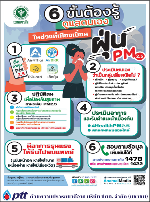 6 ขั้นต้องรู้ ดูเเลตนเองในช่วงที่เมืองเปื้อนฝุ่น PM2.5 plazaradio 24/05/2025 บทความสาระน่ารู้ ชีวิตวิถีใหม่ ห่างไกล Covid-19