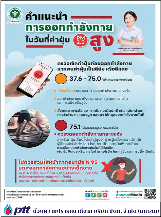 คำแนะนำการออกกำลังกายในวันที่ค่าฝุ่น PM2.5 สูง plazaradio 20/11/2025 บทความสาระน่ารู้ ชีวิตวิถีใหม่ ห่างไกล Covid-19