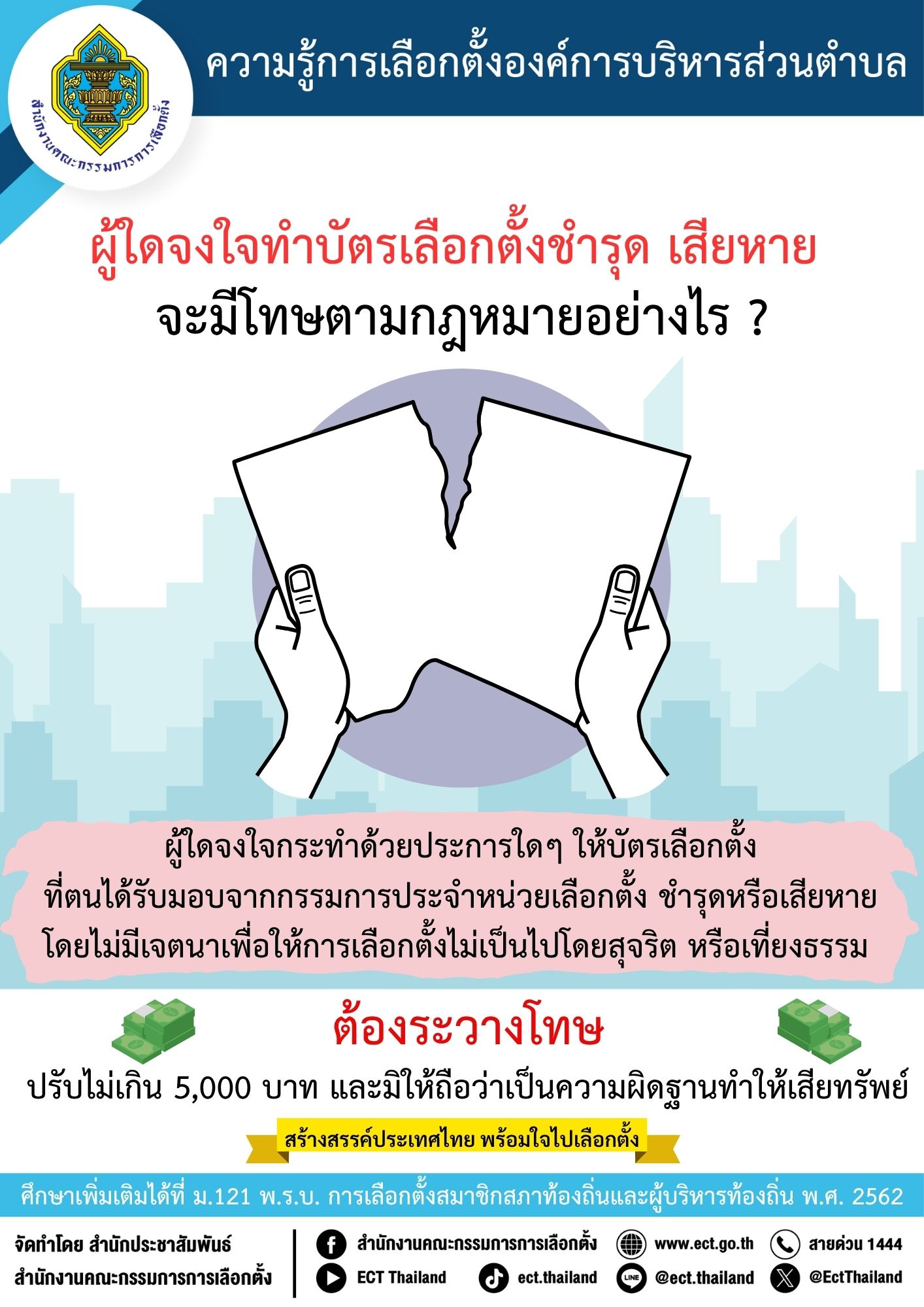ผู้ใดจงใจทำบัตรเลือกตั้งชำรุด เสียหาย จะมีโทษตามกฎหมายอย่างไร